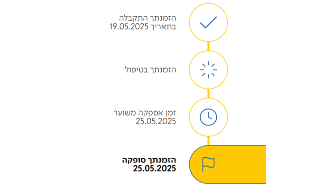 - סטטוס עדכני: האם ההזמנה התקבלה / בדרך / סופקה